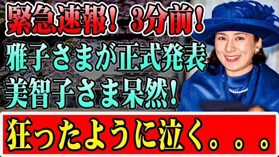 3.雅子様と、対等になろうとしているのか、一般人の、キーコと、もはや、老害と、化してしまった、ミテコ…。今上天皇陛下の、長子は愛子様1人です!愛子天皇を切に願います