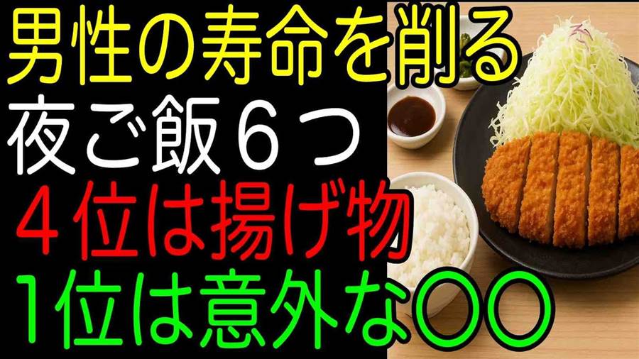 今日は皆さんにぜひご紹介したい映像があります!実は、男性の寿命を脅かす危険な夜ご飯のランキングが発表されたんです。驚くべきことに、私たちが日常的に食べている「ヘルシー」と思われる食事が、実は寿命を削っている可能性があるんです。