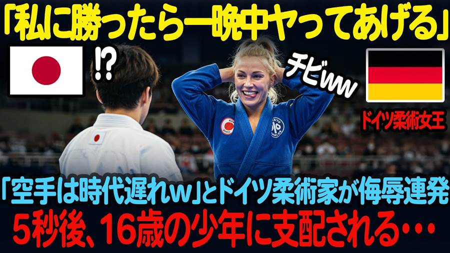 今日は皆さんにぜひご紹介したい映像があります!日本の空手高校生が、ヨーロッパ最強の柔術家アグネス・シミットと衝撃の対決を繰り広げます。なんと、アグネスは「もし私に勝てたら一晩中何をしてもいい」と挑発。この言葉がどれだけの緊張感を生むのか、予想外の展開に目が離せません!