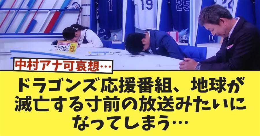 今日は皆さんにぜひご紹介したい映像があります!なんと、地球が滅亡する寸前の中日ドラゴンズ応援番組が放送されるという衝撃的な事態が起こりました。この状況、予想外ですよね。ファンとしては、こうした困難な時にこそみんなの心が一つになって、希望を探す姿勢が大切だと感じます。